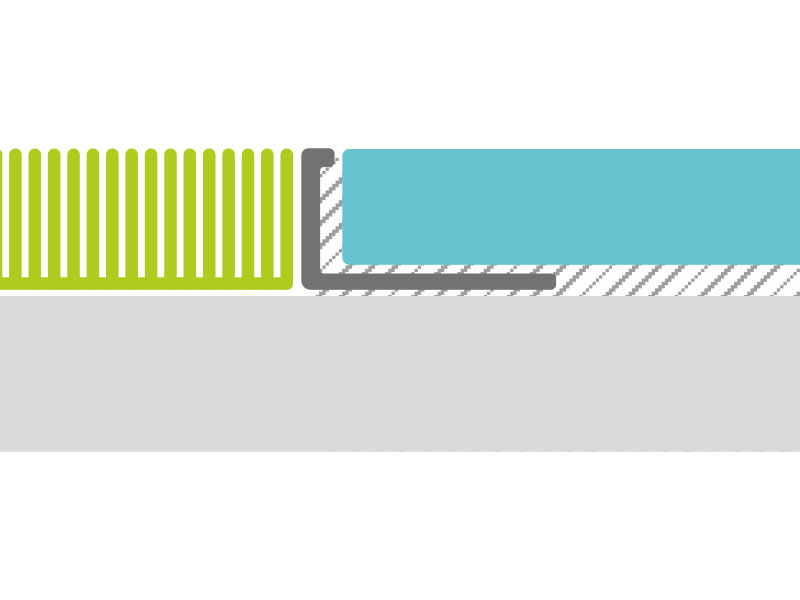 Профиль декоративный алюминиевый КТМ-2000 228 – перфорированный L-образный профиль для прямой отделки краев плитки. Способ крепления: клей для плитки.