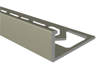 Перфорированный L-образный профиль для прямой или криволинейной отделки краев плитки. Высота профиля 10 мм