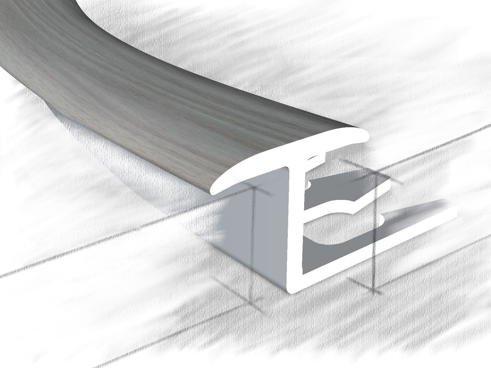 Порог алюминиевый КТМ-2000 314-618М 2,7 м дуб снежный —Т-образный профиль для стыковки плитки и ламината. Гнется. Для предания идеального радиуса рекомендуется использовать станок гибочник. Идеальное решение для криволинейных стыков. Крепится на клей для плитки или жидкие гвозди.