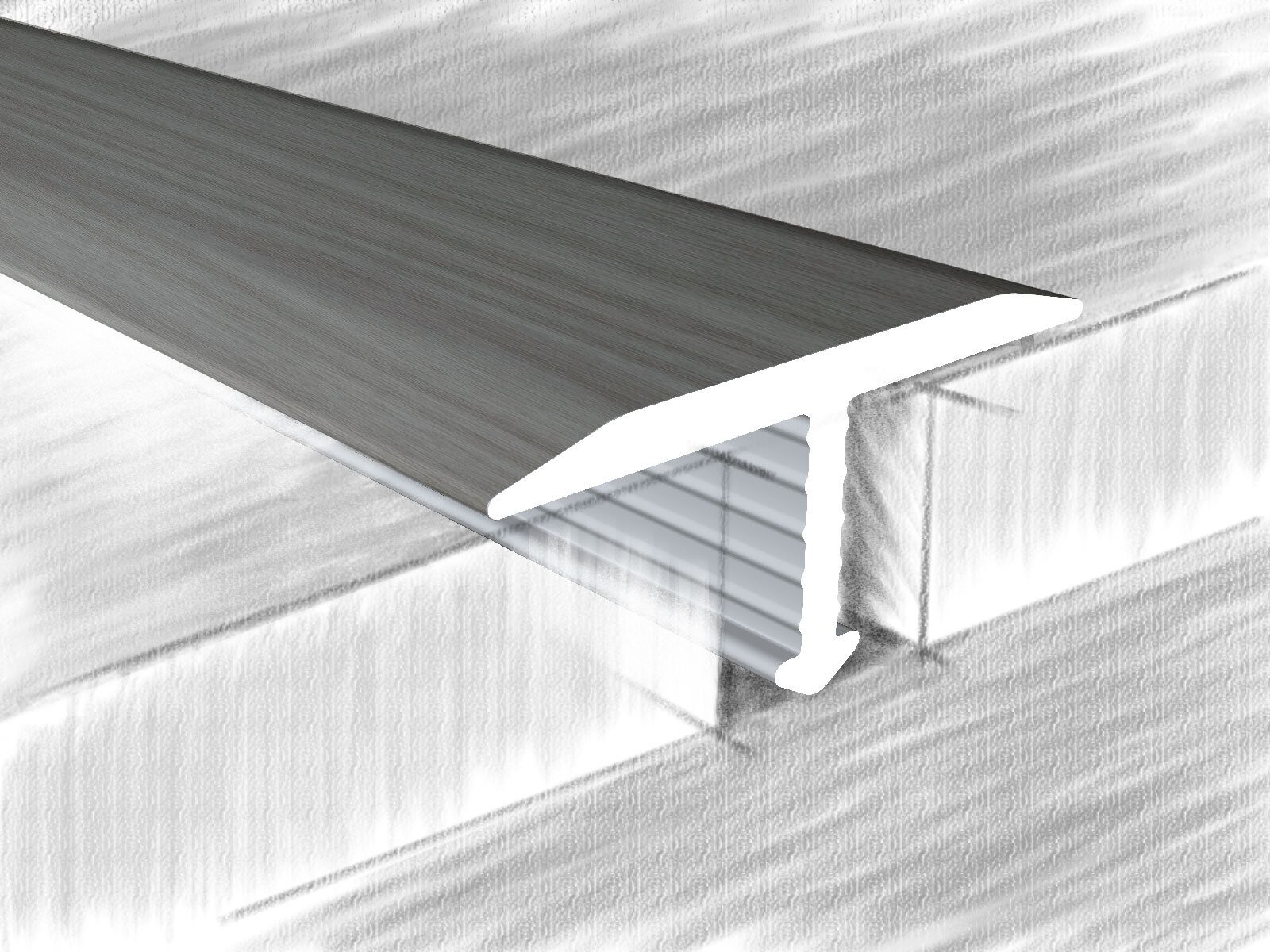 Порог алюминиевый КТМ-2000 318-618М 2,7 м дуб снежный —Т-образный профиль для стыковки плитки и ламината. Гнется. Для предания идеального радиуса рекомендуется использовать станок гибочник. Идеальное решение для криволинейных стыков. Крепится на клей для плитки или жидкие гвозди.