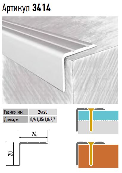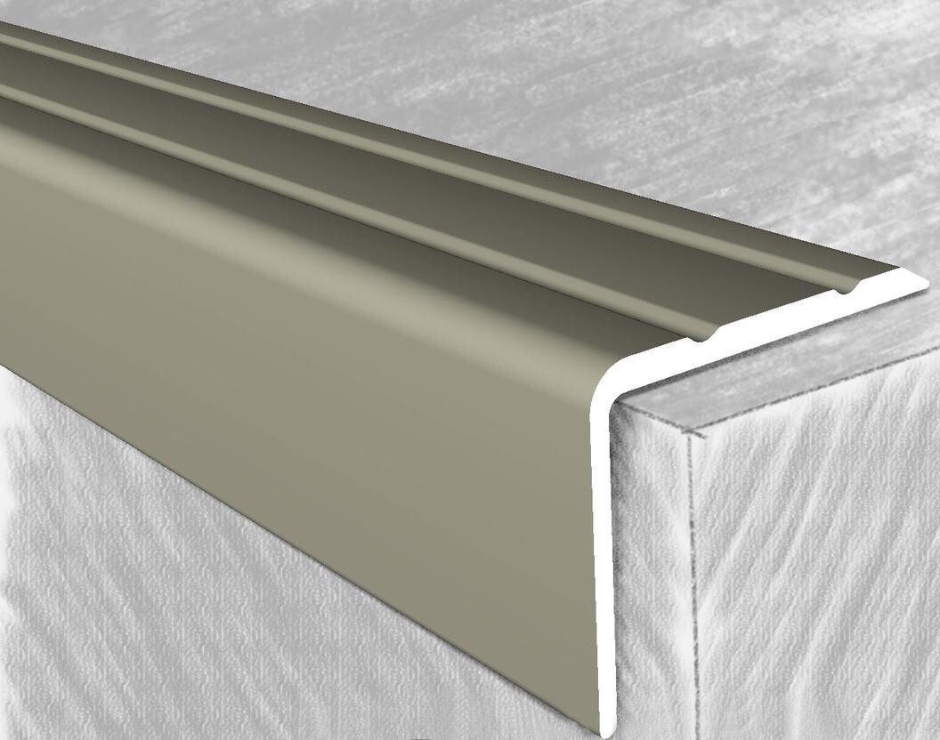 Уголок декоративный алюминиевый КТМ-2000 3414-06К 0,9 м шампань – профиль алюминиевый анодированный угловой с открытым креплением для соединения разноуровневых напольных покрытий и отделки ступеней лестниц.