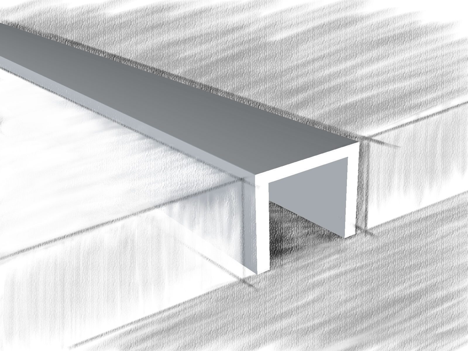 Профиль декоративный алюминиевый КТМ-2000 389-01M 2,7 м серебро предназначен для общественных помещений, для офисных и жилых комнат. Представляется собой П-образный профиль 10х10 мм для разделения двух плоскостей. Крепится с помощью клея для плитки. Выполнен из анодированного алюминия.