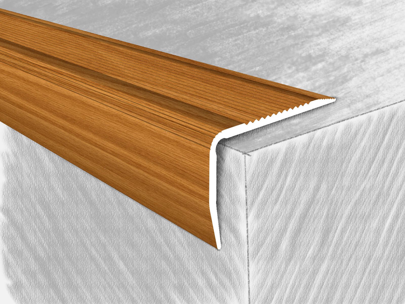 Уголок декоративный алюминиевый КТМ-2000 664-417Т 1,8 м дуб золотой – алюминиевый угловой профиль с рифленой поверхностью для отделки углов, ступеней и порогов. Степень нагрузки: для общественных помещений, для офисных помещений, для жилых помещений. Открытый крепеж (дюбель-шуруп).