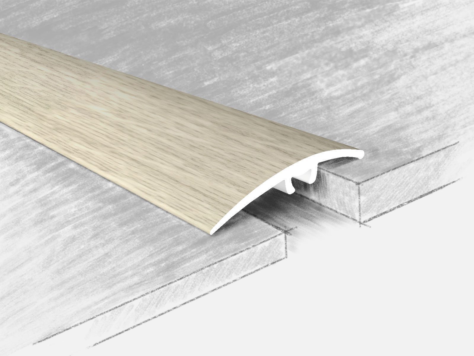 Порог алюминиевый КТМ-2000 72-616Н 1,35 м дуб ваниль — порог из ламинированного алюминия шириной 41 мм. Имеет продольную жесткость. Применяется для соединения стыков между плиткой, ламинатом, паркетом, ковровыми покрытиями, имеющими перепад от 0 до 13 мм. Самоклеющаяся основа повышенной прочности позволяет выполнить установку профиля в кратчайшие сроки без сверления.