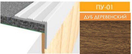 Уголок декоративный алюминиевый АЛКОМ-М ПУ 01 1,8 м дуб деревенский (R0000223) ‒ порог для пола угловой, предназначен для оформления края покрытий, углов ступеней как внешних, так и внутренних.