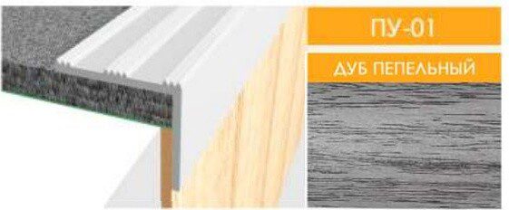 Уголок декоративный алюминиевый АЛКОМ-М ПУ 01 1,8 м дуб пепельный (00001398) ‒ порог для пола угловой, предназначен для оформления края покрытий, углов ступеней как внешних, так и внутренних.