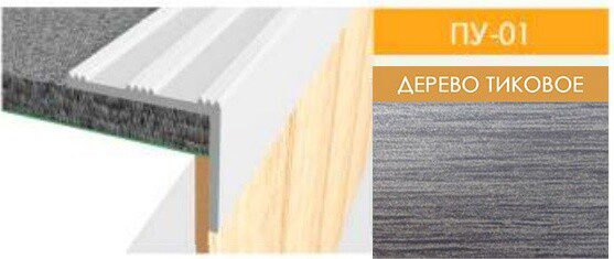 Уголок декоративный алюминиевый АЛКОМ-М ПУ 01 1,8 м тиковое дерево (R004930) ‒ порог для пола угловой, предназначен для оформления края покрытий, углов ступеней как внешних, так и внутренних.