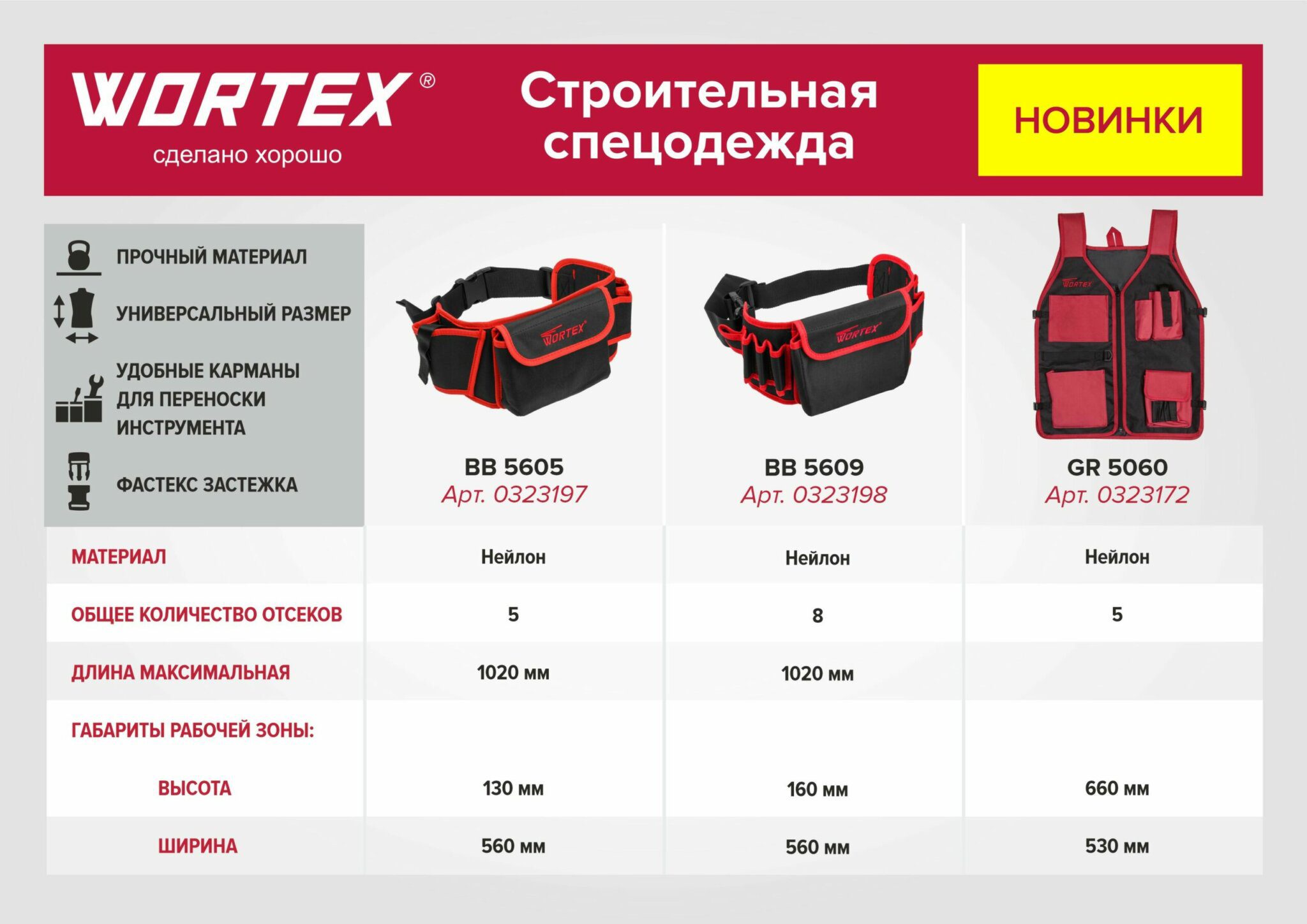 Пояс для инструмента WORTEX BB 5609 (0323198) предназначен для переноски инструмента и оснастки. Представляет возможность иметь необходимый предмет в зоне прямого доступа. Экономит время при высотных работах и в остальных случаях, когда нужно преодолеть расстояние за понадобившейся оснасткой. Изготавливается из прочного износостойкого нейлона. Крепится на бедрах или талии застежкой типа фастекс. Конструкция подразумевает наличие большого центрального подсумка (140х180 мм), а также 7 отделений для крепежа и мелкогабаритного инструмента.