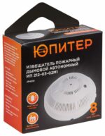 Пожарный извещатель дымовой автономный ИП 212–03–02М1 ЮПИТЕР (JP4201) предназначен для круглосуточной непрерывной работы от встроенного элемента питания напряжением 9В (батарея типа “Крона” или аналогичная). Обеспечивает автоматическое обнаружение пожара в помещениях зданий и сооружений, в том числе жилых. Извещатель имеет световое и звуковое оповещение людей о пожаре самостоятельно или совместно в составе автономной системы пожарной сигнализации. Формирует два различных сигнала: “Тревога” и “Разряд батареи”. Питание извещателя осуществляется от элемента питания типа “Крона”, устанавливаемого со стороны задней стенки под розеткой. Элемент питания, руководство и монтажные принадлежности входят в комплект поставки. Чувствительность извещателя соответствует задымленности среды с оптической плотностью от 0,05 до 0,2 дБ/м. Уровень громкости звукового сигнала не менее 85 дБ.