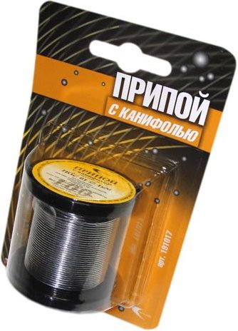 Припой ПОС 61 трубка, катушка ф1мм, с канифолью (100г) в блистере
