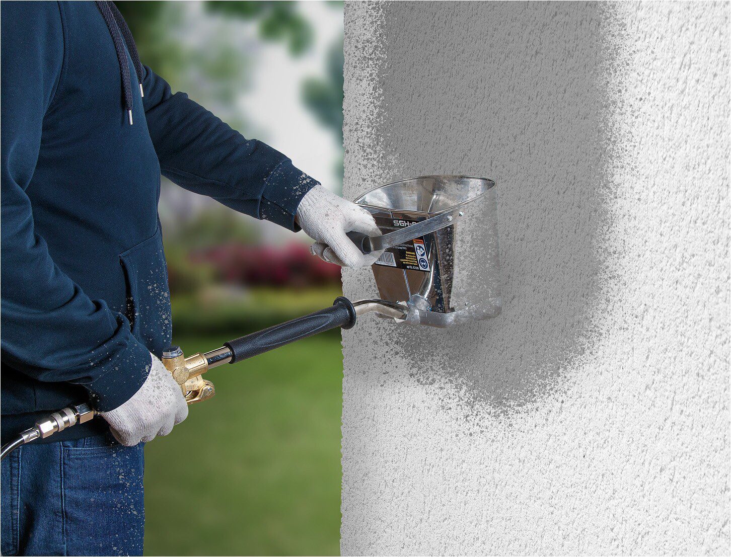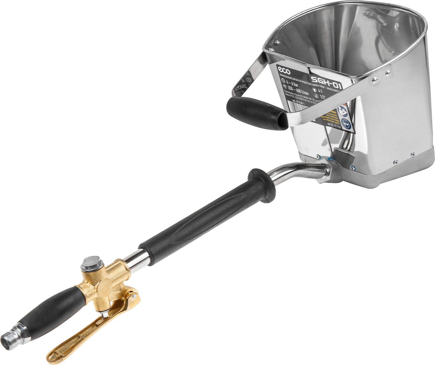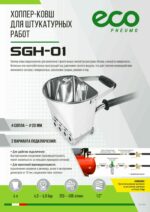 Ковш-хоппер штукатурный ECO SGH-01 (EC1538-1) предназначен для нанесения строительных смесей (штукатурки, бетона, глины) на поверхность бетонных или железобетонных конструкций под давлением сжатого воздуха, что дает плотное взаимодействие наносимого состава с поверхностью, заполнение трещин, раковин и пор, а также значительно ускоряет нанесение смесей по сравнению с ручным способом.
