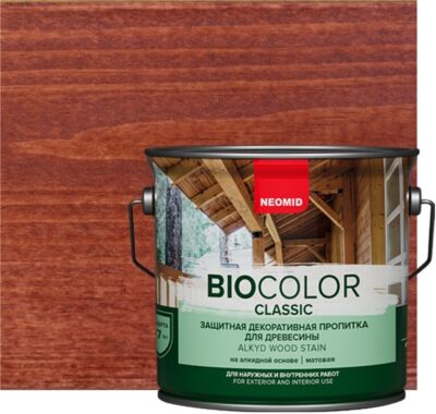 Пропитка НЕОМИД Bio Color Classic махагон 2,7 л – деревозащитный декоративный глубокопроникающий состав на алкидной основе для эффективной защиты и декоративной отделки деревянных поверхностей. Обладает хорошей пропитывающей способностью и образует на поверхности полуматовую защитную пленку с высокими декоративными и защитными свойствами. Благодаря входящим в состав активным добавкам образующееся покрытие имеет трехступенчатую систему защиты деревянной поверхности.
