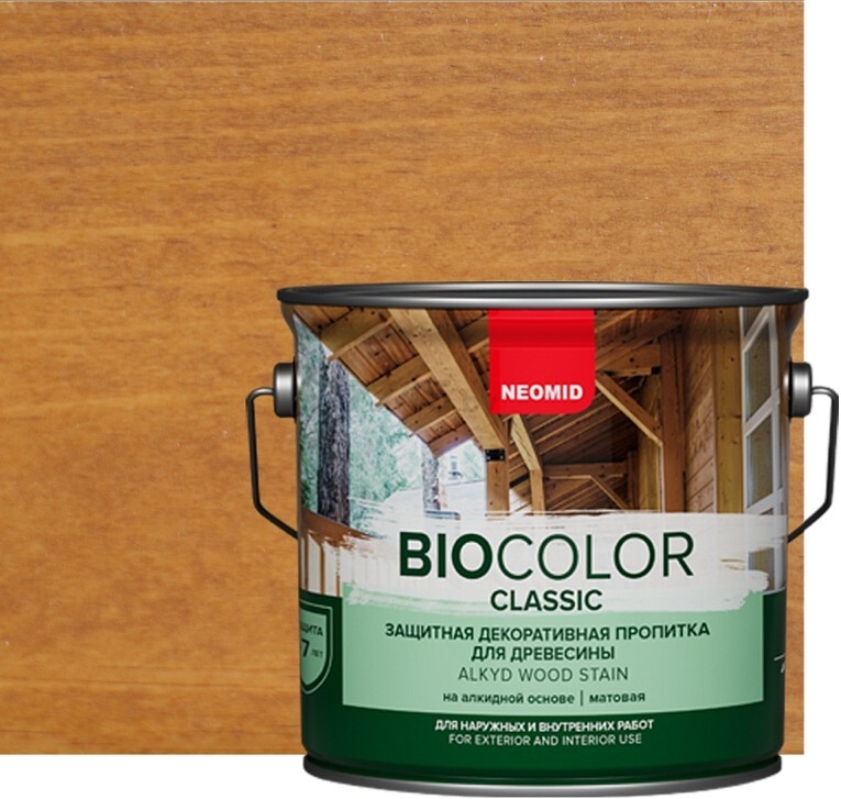 Пропитка НЕОМИД Bio Color Classic орегон 2,7 л – деревозащитный декоративный глубокопроникающий состав на алкидной основе для эффективной защиты и декоративной отделки деревянных поверхностей. Обладает хорошей пропитывающей способностью и образует на поверхности полуматовую защитную пленку с высокими декоративными и защитными свойствами. Благодаря входящим в состав активным добавкам образующееся покрытие имеет трехступенчатую систему защиты деревянной поверхности.
