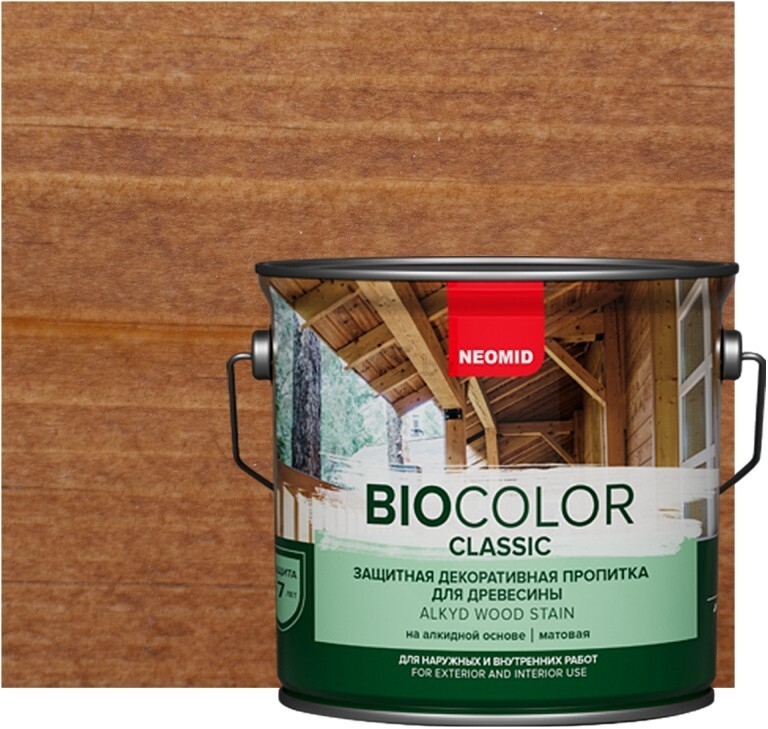 Пропитка НЕОМИД Bio Color Classic тик 2,7 л – деревозащитный декоративный глубокопроникающий состав на алкидной основе для эффективной защиты и декоративной отделки деревянных поверхностей. Обладает хорошей пропитывающей способностью и образует на поверхности полуматовую защитную пленку с высокими декоративными и защитными свойствами. Благодаря входящим в состав активным добавкам образующееся покрытие имеет трехступенчатую систему защиты деревянной поверхности.
