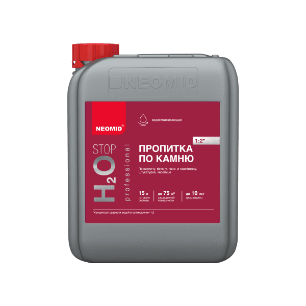 Пропитка НЕОМИД Н2О-стоп 5 л придает водо- и грязеотталкивающие свойства впитывающим воду пористым строительным материалам, таким как: облицовочный и силикатный кирпич, искусственный и природный отделочный камень (известняк, песчаник), тротуарная плитка, бетон, газобетон, пенобетон, гипс, гипсокартон и т п. Используется в цементно-песчаных смесях, при производстве бетонов, штукатурок, цементно-песчаных стяжек тротуарной плитки и отделочного камня с целью придания водоотталкивающих свойств, повышения морозостойкости и долговечности.
