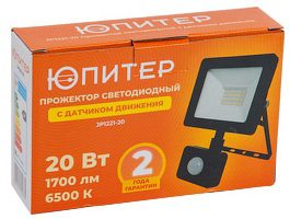 Прожектор светодиодный с датчиком движения JP1221 20 Вт 6500K ЮПИТЕР (JP1221-20) разработан специально для мест с нерегулярной потребностью в освещении. Применяется для организации зонального и общего освещения коммерческих, промышленных и жилых объектов, фонтанов, ландшафтной архитектуры. Прожектор имеет прочный литой алюминиевый корпус и закаленное стекло, что позволяет его использование в условиях агрессивной окружающей среды. Световой поток рассеивается на 110 градусов, что позволяет максимально охватить подсвечиваемую поверхность. Дальность действия датчика – 5 м. Срок службы – 30000 часов. Тип кабеля – КГ 3х1.0 мм2 (H05RN-F 3G1.0mm2), длина кабеля – 15 см.