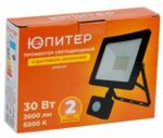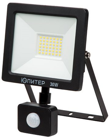 Прожектор светодиодный с датчиком движения JP1221 30 Вт 6500K ЮПИТЕР (JP1221-30) разработан специально для мест с нерегулярной потребностью в освещении. Применяется для организации зонального и общего освещения коммерческих, промышленных и жилых объектов, фонтанов, ландшафтной архитектуры. Прожектор имеет прочный литой алюминиевый корпус и закаленное стекло, что позволяет его использование в условиях агрессивной окружающей среды. Световой поток рассеивается на 110 градусов, что позволяет максимально охватить подсвечиваемую поверхность. Дальность действия датчика – 5 м. Срок службы – 30000 часов. Тип кабеля – КГ 3х1.0 мм2 (H05RN-F 3G1.0mm2), длина кабеля – 15 см.