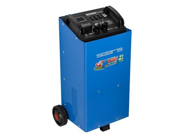 Устройство пуско-зарядное SOLARIS ST-402 (ST402011) предназначено для заряда свинцово-кислотных 12 В и 24 В аккумуляторных батарей (АКБ) автомобилей, грузовиков, микроавтобусов, тракторов, сельхозмашин емкостью от 20 до 800 А*ч. Возможна зарядка нескольких аккумуляторов при параллельном подключении с разной емкостью, которая должна суммарно соответствовать величине не более 800 А*ч.