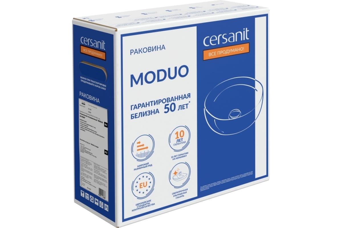 Умывальник CERSANIT Moduo 40 Ring (63569) – это круглая раковина правильной формы с тонкой оправой восхищает своей легкостью и нежными формами. Умывальник изготовлен из керамики высокого качества. Универсальное решение подойдёт для интерьера в любом стиле. На ультрабелой сверхпрочной глазури не задерживается грязь, она легко моется, поэтому раковина всегда остаётся чистой. Максимально допустимая нагрузка на раковину 150 кг. Подходит для нескольких коллекций мебели.