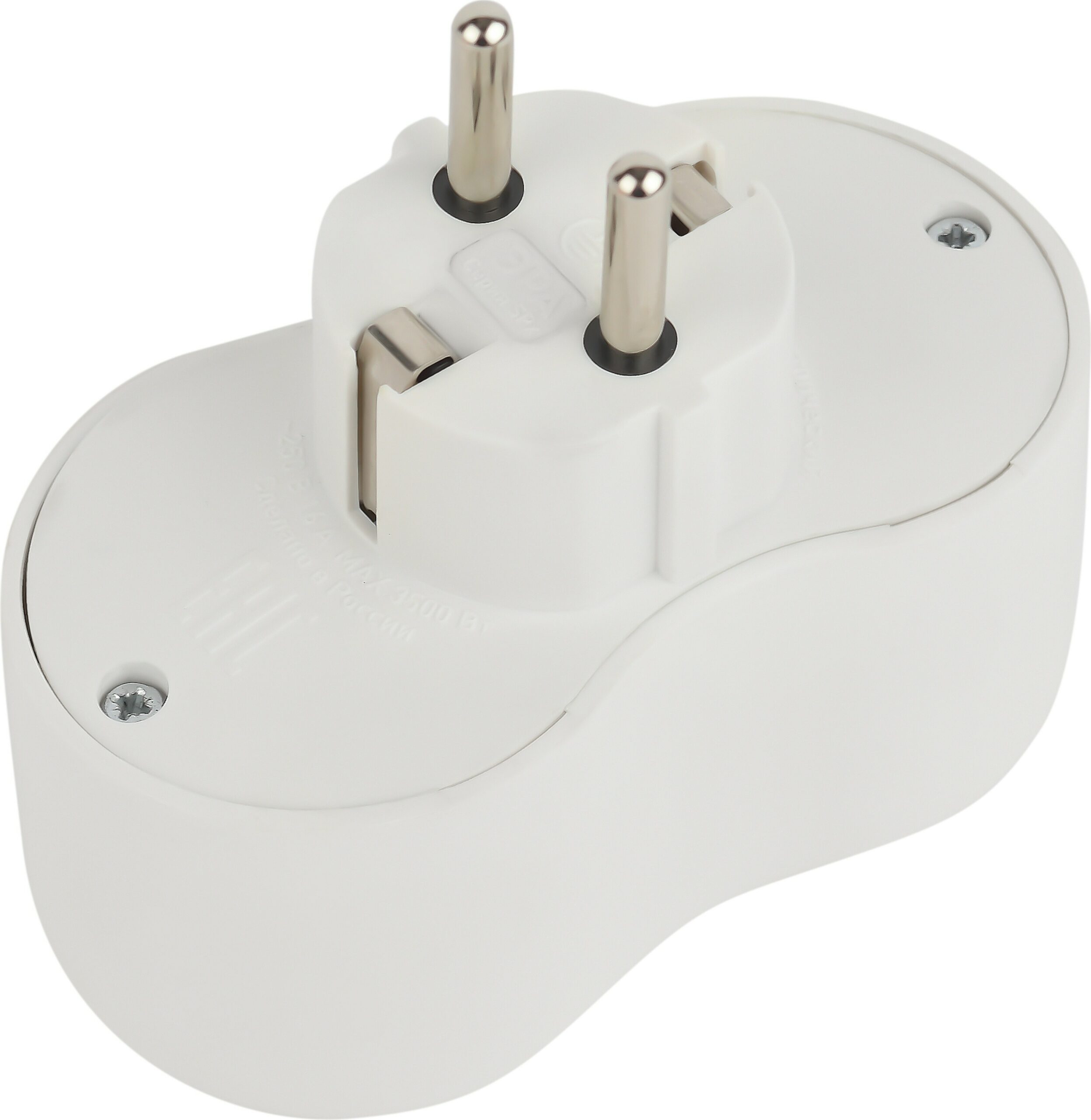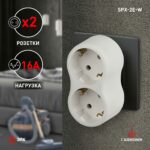 Разветвитель двойной для розетки ЭРА SPx-2e-W с заземлением 16А белый рассчитан на максимальную мощность 16А/3500Вт. Корпус выполнен из ударопрочного и негорючего пластика (поликарбонат). Модель разветвителя на 16А позволяет подключить мощные бытовые приборы общей нагрузкой до 3500Вт. Не бойтесь включить чайник, обогреватель или микроволновку.