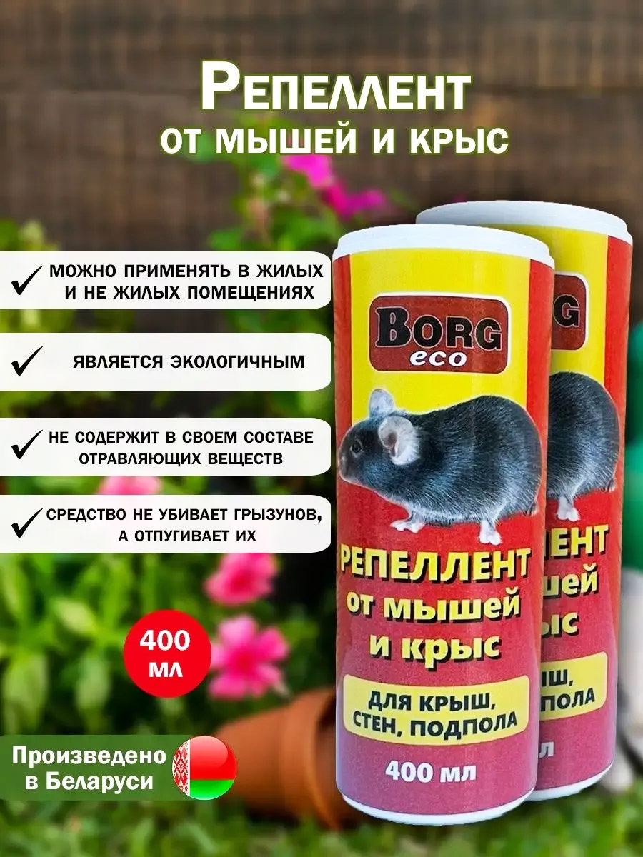 Репеллент BORG Eco предназначен для применения в жилых и нежилых помещениях, в которых нежелательно использование ядов. Репеллент является экологичным и не содержит в своем составе отравляющих веществ.Способ применения:Рассыпать препарат в помещениях, нуждающихся в обработке, из расчета 50 мл на 1 м2 помещения. Если вредители уже находятся в помещении, не рассыпайте репеллент возле выхода, чтобы дать им возможность уйти. Средство не убивает грызунов, а отпугивает их.