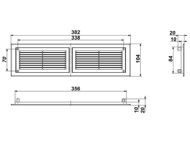 Решетка вентиляционная ZERNBERG Long 38/2 w/n (10244651) способствует правильной циркуляции воздуха внутри помещений. Предназначена для монтажа в дверях ванных комнат, туалетов, кухонь и т.д. Может устанавливаться в подоконник для правильного распределения теплого воздуха от батарей центрального отопления. Изготавливается из высококачественного пластика. Крепление происходит при помощи шурупов непосредственно к дверному полотну или подоконнику. Не оснащена защитной сеткой от насекомых. Минимальная толщина дверного полотна – 29 мм. Необходимый вырез в двери – 86х358 мм.