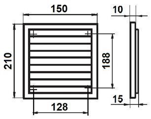 Решетка вентиляционная СЕМЬ ВЕТРОВ РВ2-02 150х210 – декоративное оформление выходов приточных каналов жилых и промышленных помещений. Используется для правильного распределения воздушного потока внутри помещений. Решетки имеют съемные жалюзи для удобного ухода. Крепление осуществляется при помощи саморезов. Наружный монтаж. Размер под крепления (мм) – 128х188. Максимальный размер вентиляционного отверстия(мм) – 94х154 мм.