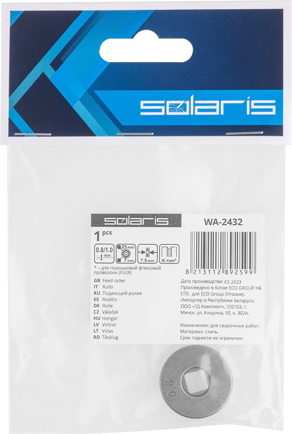 Ролик подающий для проволоки SOLARIS 0,8-1,0 мм K-тип (WA-2432) подходит под один из типов пластиковых механизмов подачи проволоки с пластиковым быстросъемным фиксатором ролика. Канавки под проволоку K-типа подходят под флюсовую (FLUX) проволоку для сварки без газа.