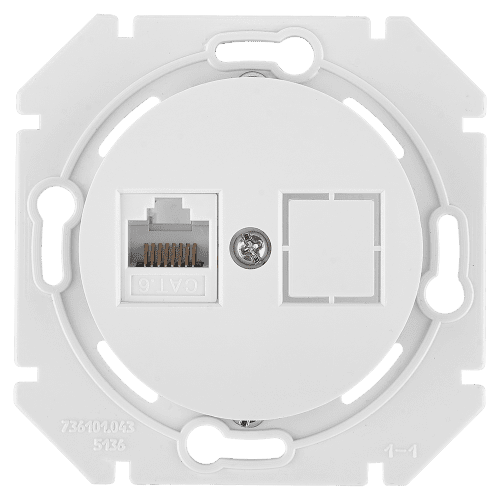 Розетка компьютерная BYLECTRICA Прованс белая (РК18-6311) изготовлена из ABS пластика, который обладает высокой ударопрочностью. Количество контактов – 8, климатическое исполнение – УХЛ4, категория розетки 5е (скорость передачи данных – 100 Мбит/с).Установочные размеры (расстояние между крепежными отверстиями изделия, крепежными отверстиями коробки): 60 +/-0,3 мм