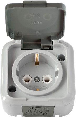 Розетка наружная с заземлением брызгозащищенная BYLECTRICA Пралеска Аква серый (РА16-297(02)) изготовлена из ABS пластика, который обладает высокой ударопрочностью. Климатическое исполнение УХЛ4. Сечение проводников от 1,5 до 2,5 мм². Установочные размеры (расстояние между отверстиями под шурупы) 53±0,2 мм. Габаритные размеры: 70х70х50,9 мм.