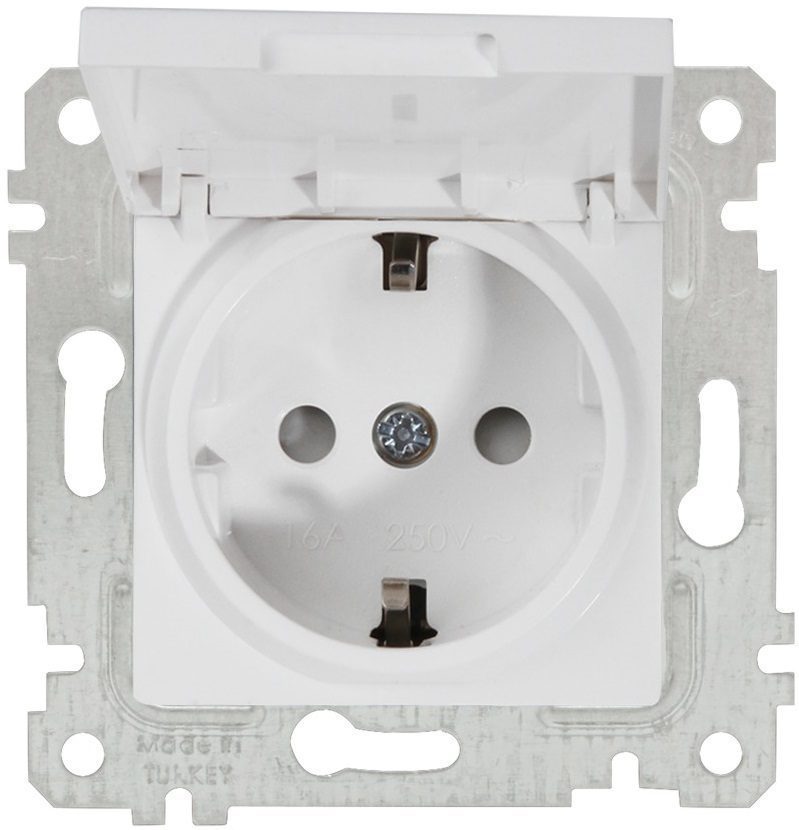 Розетка скрытая с крышкой и заземлением MUTLUSAN Rita белая (2200 611 0201) предназначена для использования в стандартных электрических сетях переменного тока с напряжением 220 В и частотой 50 Гц.