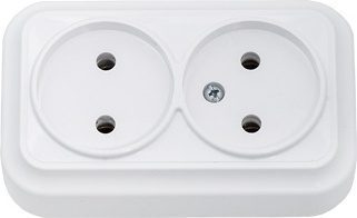 Розетка двойная наружная без заземления белая Вариант BYLECTRICA (РА16-0141) изготовлена из ABS пластика, который обладает высокой ударопрочностью. Климатическое исполнение УХЛ4. Сечение проводников присоединяемых к контактам выключателя розетки от 1,5 до 2,5 мм². Установочные размеры (расстояние между отверстиями под шурупы) 38±0,5 мм. Габаритные размеры: 101х60х27,5 мм.