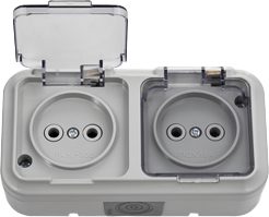 Розетка двойная наружная брызгозащищенная BYLECTRICA Пралеска Аква серый (РА16-302(02)) предназначена для бытового использования в стандартных электрических сетях с переменным током и номинальной частотой 50 Гц. Климатическое исполнение – УХЛ4.