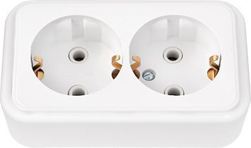 Розетка двойная наружная с заземлением белая BYLECTRICA (РА16-250) изготовлена из ABS пластика, который обладает высокой ударопрочностью. Климатическое исполнение УХЛ 4. Установочные размеры 39±0,6 мм. Сечение проводников от 1,5 до 2,5 мм². Максимальный диаметр подводимого к выключателю кабеля 9 мм. Габаритные размеры: 100х60х40 мм.