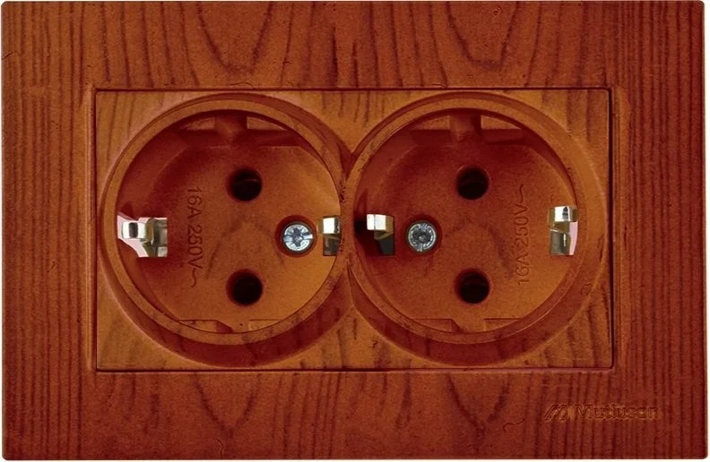 Розетка двойная скрытая с заземлением MUTLUSAN Rita орех (2220 202 0257) предназначена для бытового использования в стандартных электросетях с переменным током и частотой 50 Гц.