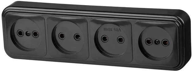 Розетка четверная наружная ЮПИТЕР Стандарт черная (JP7412-11) предназначена для монтажа с открытой проводкой. Обладает простым и лаконичным дизайоном. Выполнена из высококачественного ABS-пластика. Климатическое исполнеие – УХЛ4.