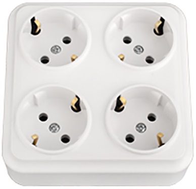 Розетка четверная наружная с заземлением белая Вариант BYLECTRICA (РА16-0182) изготовлена из ABS пластика, который обладает высокой ударопрочностью. Климатическое исполнение УХЛ4. Сечение проводников присоединяемых к контактам выключателя розетки от 1,5 до 2,5 мм². Установочные размеры (расстояние между отверстиями под шурупы) 4 пары отверстий (18±0,5) мм. Габаритные размеры: 215,1х60х39 мм.