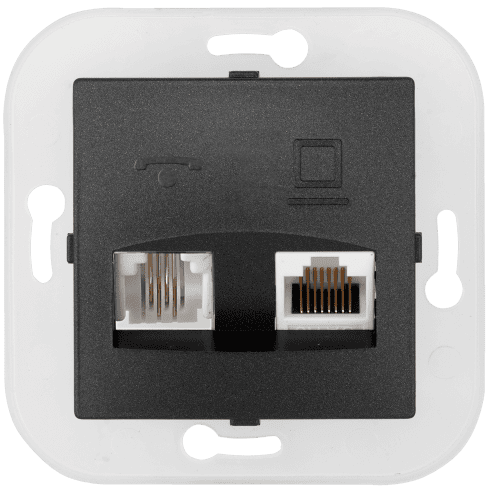 Розетка компьютерная и телефонная скрытая BYLECTRICA Уют графит (ТРК-002гр) изготовлена из ABS пластика, который обладает высокой ударопрочностью.
