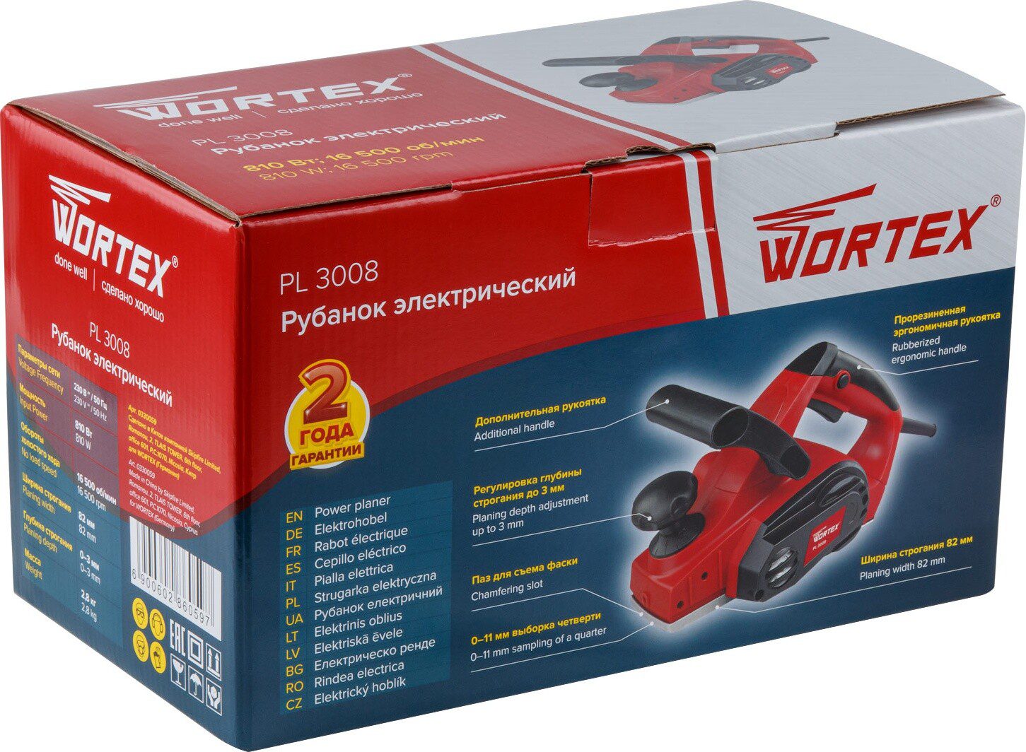 Электрорубанок WORTEX PL 3008 (0330059) – простой и надежный инструмент, который прекрасно строгает и выравнивает поверхности, этому способствует регулировка глубины строгания и параллельный упор, идущий в комплекте. Имеется кнопка блокировки выключателя, что обеспечивает защиту от случайного включения инструмента.