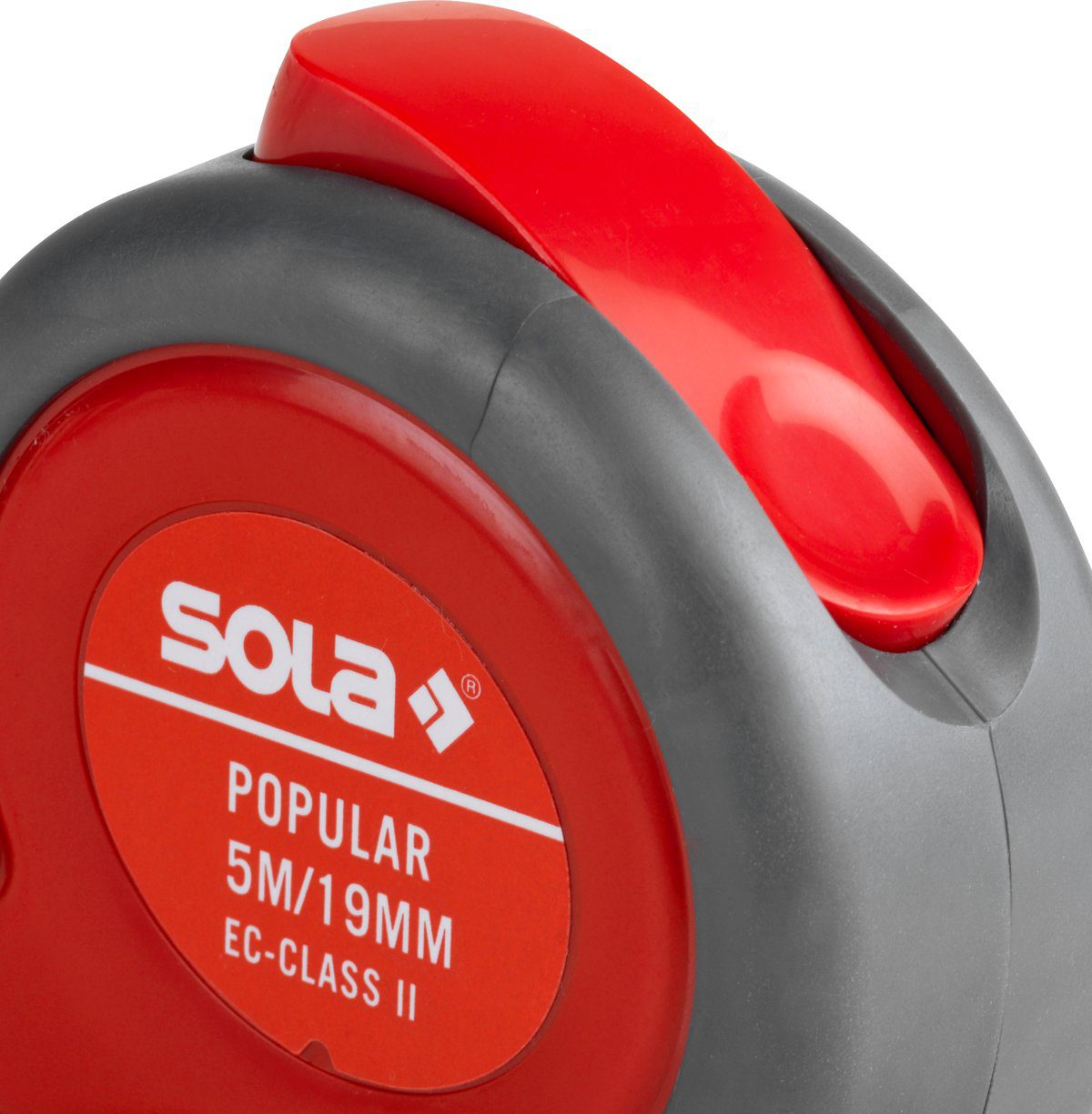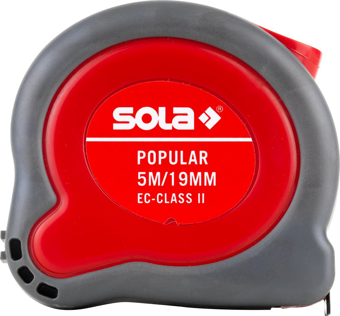Рулетка 5 м SOLA Popular PP 5 (50024301) высококачественный инструмент своего класса. Противоударный пластиковый корпус имеет обрезиненную защиту. Лента стальная с антиотражающим покрытием. Рулетка второго класса точности. Имеет дополнительные функции: концевой крючок для удобного захвата, крепление к ремню, стопорный механизм возврата, автоматическая намотка ленты. Инструмент удобен и практичен в использовании, станет надежным помощником, как профессионала, так и домашнего мастера.