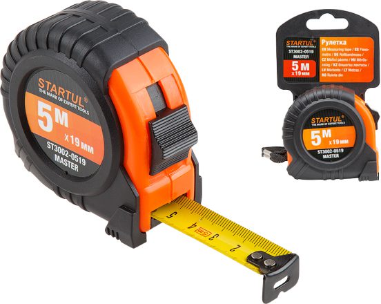 Рулетка 5 м STARTUL Master ST3002-0519 эргономичный корпус из пластика дополнительно прорезинен, инструмент отличается надежностью в работе. Рулеткой удобно пользоваться при измерении расстояний. Полотно ленты гнется на 90 градусов без излома. Механизм смотки автоматический. Крючок для зацепа. Крепление к ремню позволяет всегда иметь инструмент при себе.