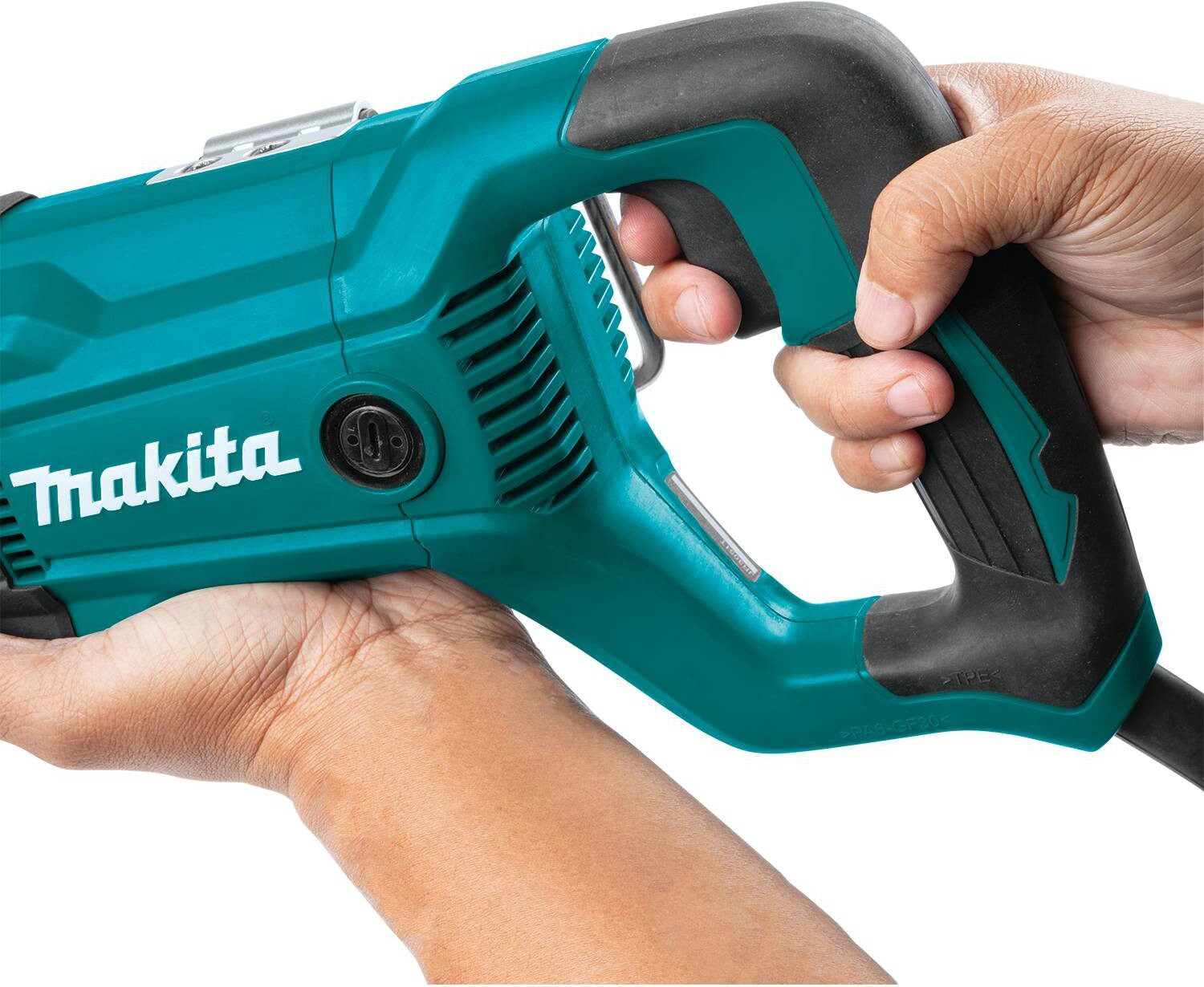 Пила сабельная MAKITA JR 3051 TK (JR3051TK) в этом инструменте реализована классическая технология ручного распиливания, что выгодно отличает его от аналогов с режущими дисками за счет привычного хвата двумя руками. Сабельная пила Makita JR3051TK была предложена потребителям в 2020 году, и в этом инструменте учтен значительный опыт эксплуатации предыдущих моделей этого типа. Агрегат рассчитан на разделку заготовок из любого материала, в том числе, металлических труб диаметром до 13 см.