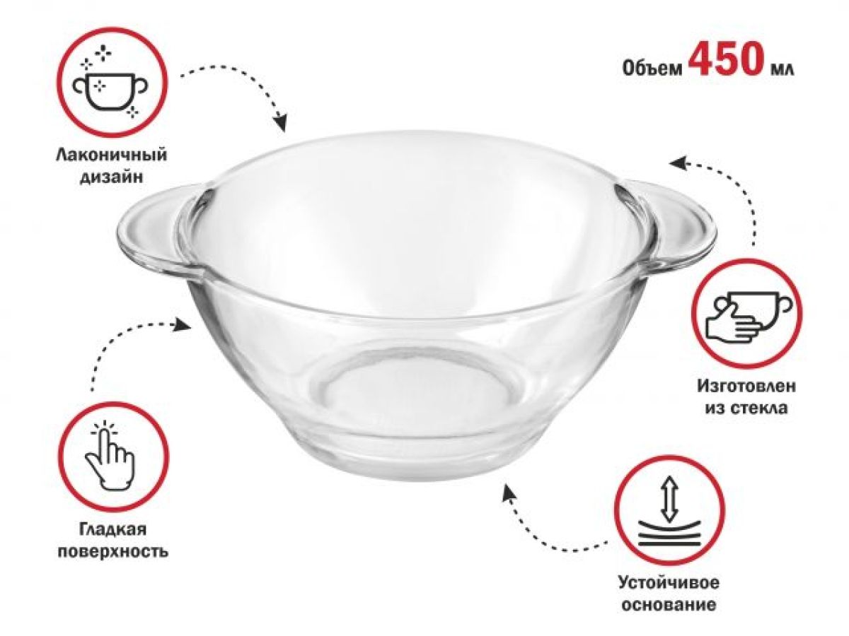 Салатник стеклянный с ручками PERFECTO LINEA Clear 450 мл (22-450200) подходит для приготовления блюд, смешивания продуктов и подачи салатов, закусок, овощей, фруктов и прочего. Такая посуда украсит собой сервировку вашего праздничного стола.