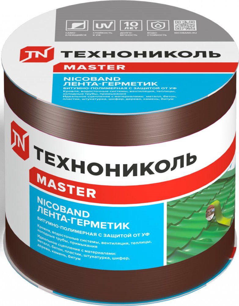 Лента гидроизоляционная ТЕХНОНИКОЛЬ Nicoband коричневый 10 см 3 м является удобным способом герметизации различных трещин и стыков. Применяется также для изоляции примыканий, ремонта кровельных покрытий крыш и водосточных систем. Специальная УФ защита ленты-герметика увеличивает срок ее эксплуатации вне помещений, а ассортимент цветовых решений подойдет под любую кровлю.