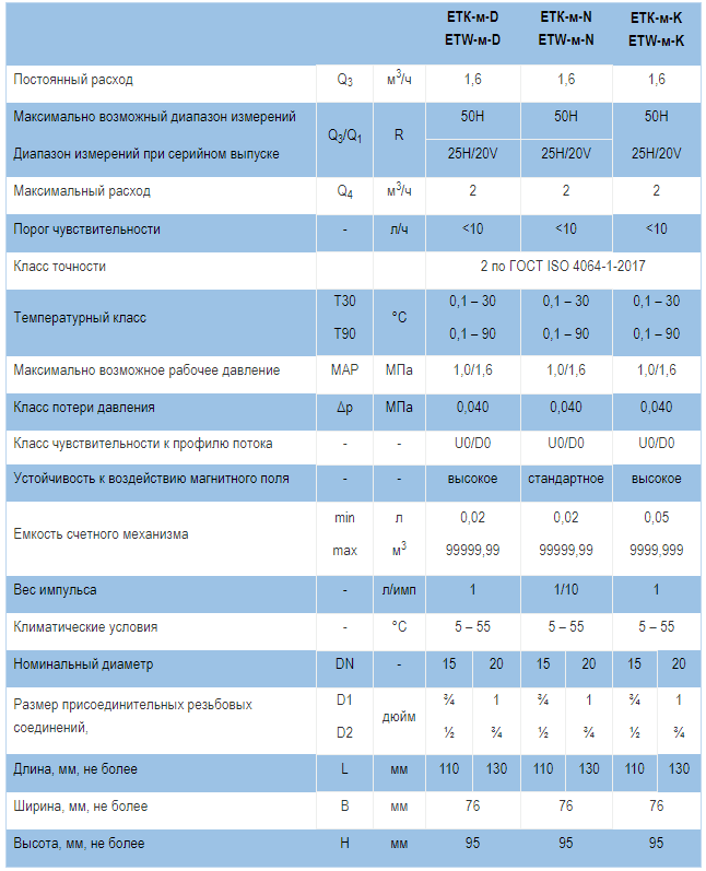 ЕТK-м-D – счетчик, оснащен модуляторным диском и может комплектоваться EDC-модулем. Счетчики в комплекте с EDC-модулем применяются в беспроводных системах дистанционного считывания показаний, обеспечивая вес импульса 1 л/имп.