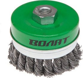 Щетка для УШМ чашка косичка 100 мм M14 усиленная ВОЛАТ (81040-100) применяется для грубой очистки металлических поверхностей от ржавчины, грязи, удаления лакокрасочных покрытий и зачистки сварных швов. Диаметр проволоки составляет 0,5 мм. Посадка: М14.