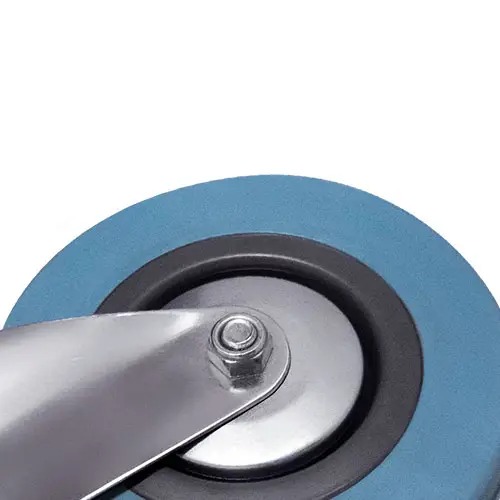Аппаратное поворотное колесо SChgb 25 с полипропиленовым ободом и литой шинкой из термопластичной серой резины. Устойчиво к износу и не оставляет следов торможения на поверхности, бесшумное. Диаметр колеса 50 мм, ширина обода 18 мм. Подшипник скольжения в ступице обеспечивает лёгкий ход. Прочный кронштейн из стали с крепёжным отверстием «под болт» и тормозом. Грузоподъёмность 25 кг даёт возможность использовать их в медицинском оборудовании, мебели для больниц, тележках для сервиса, ином лёгком оборудовании.