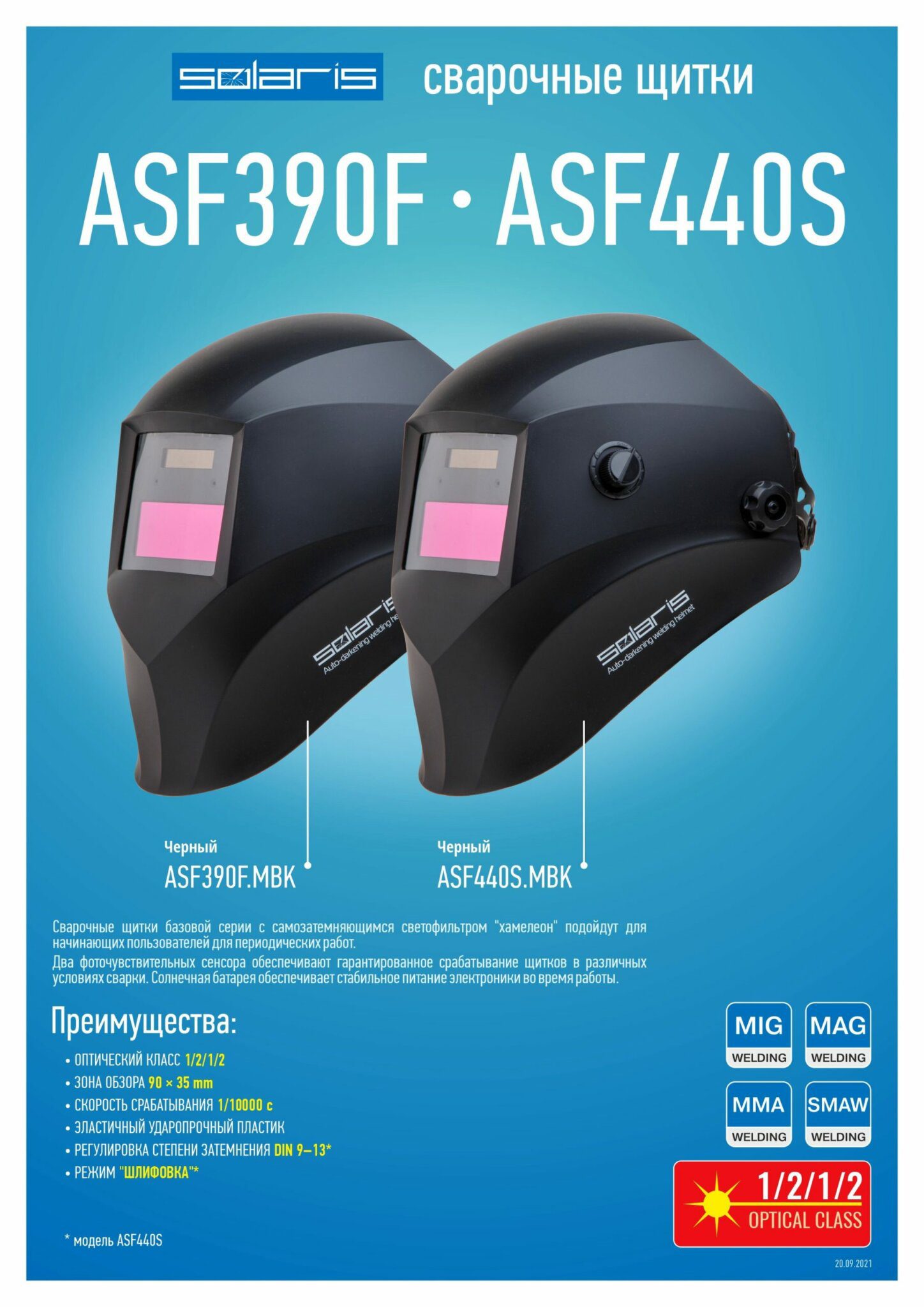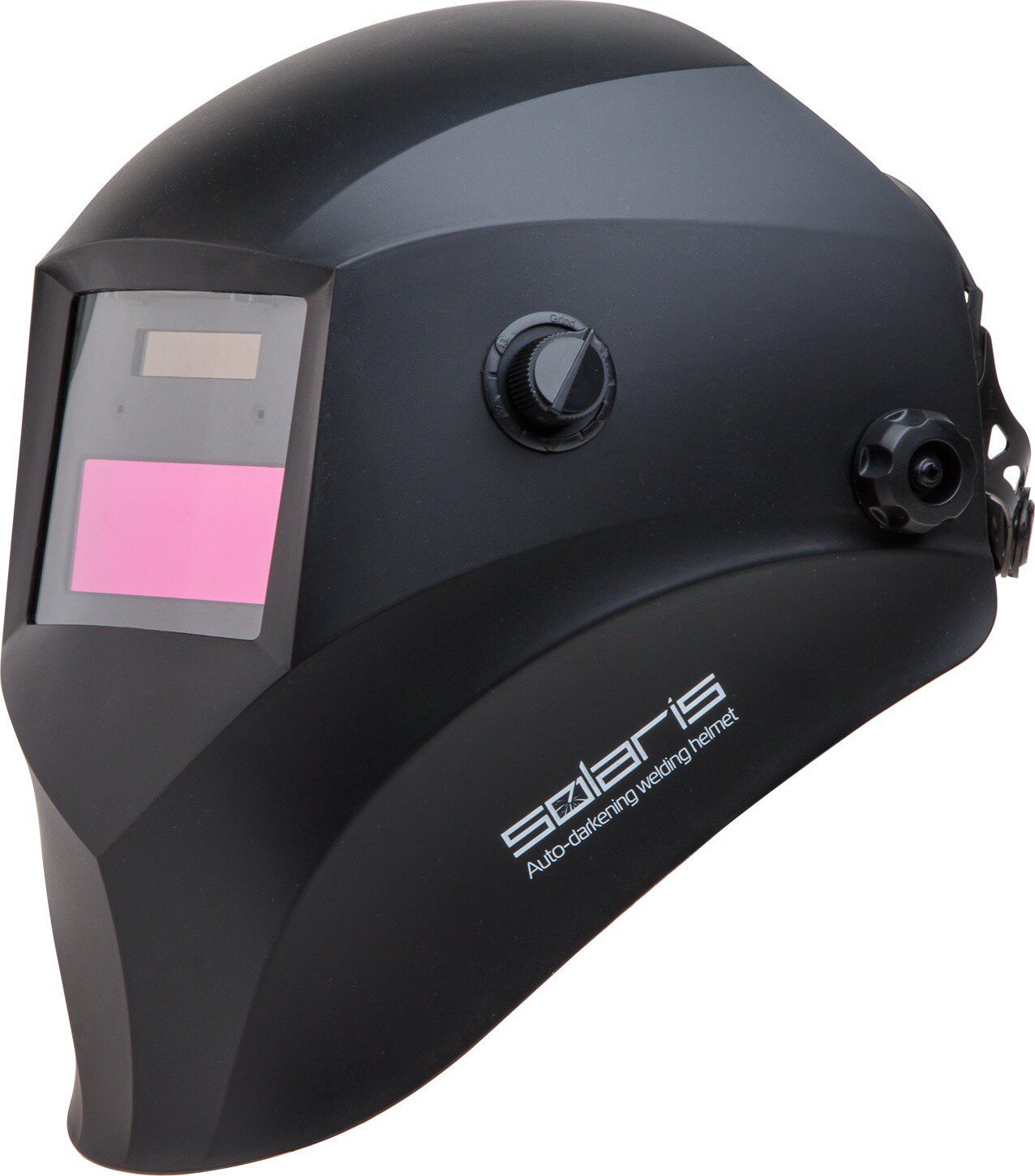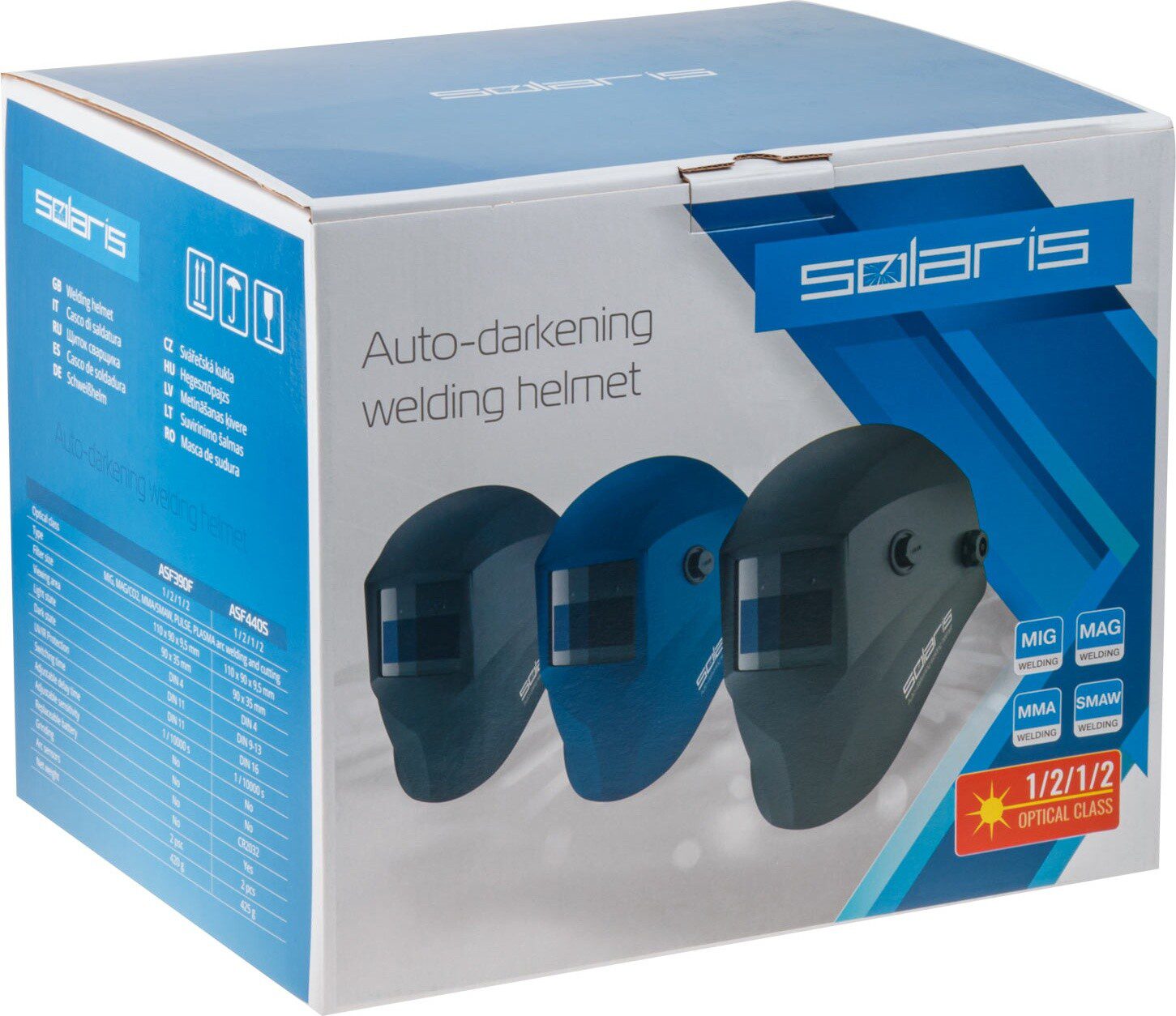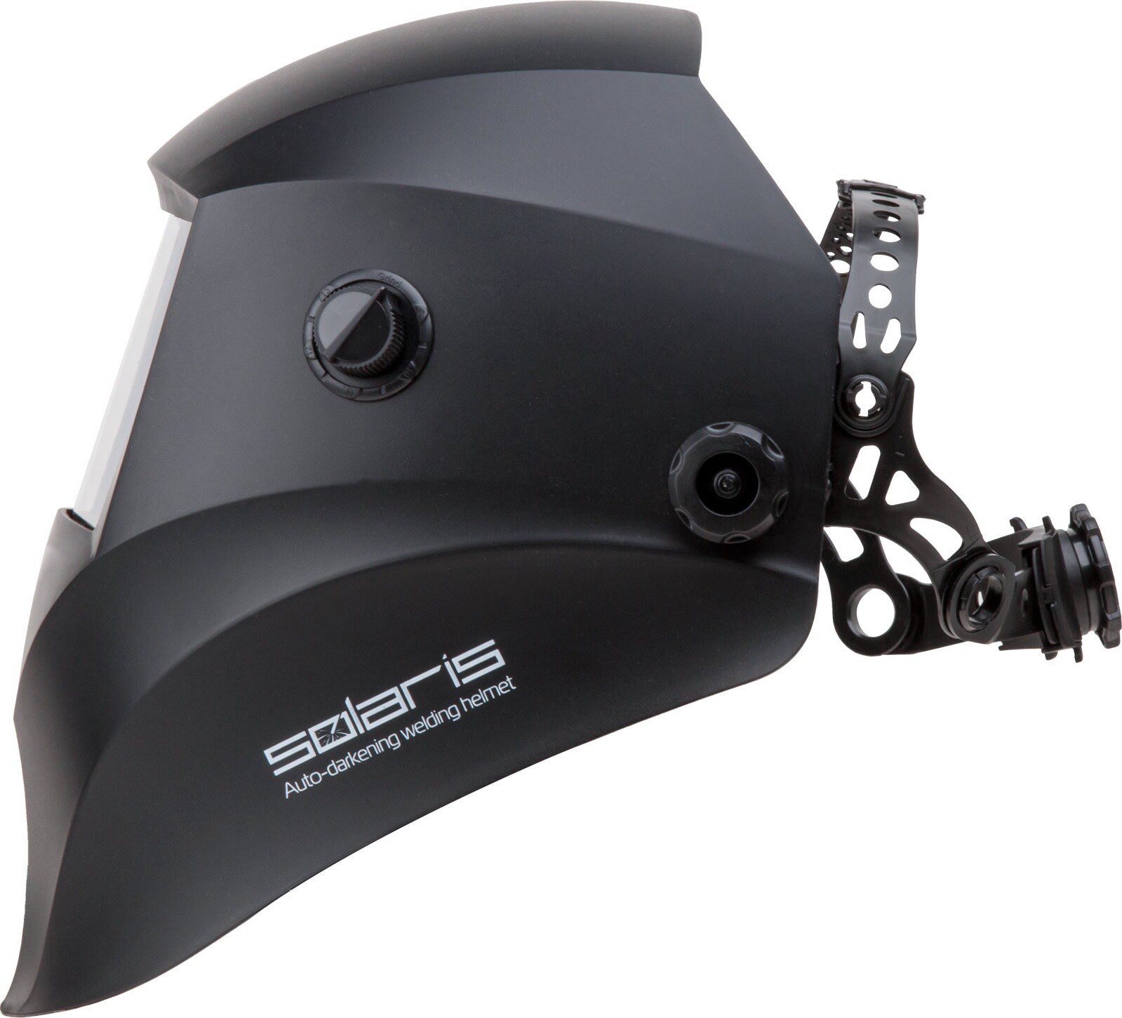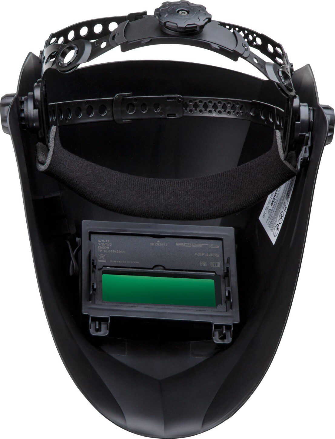 Маска сварочная хамелеон SOLARIS ASF440S черный (ASF440S.MBK) предназначена для защиты глаз, шеи, лица сварщика от светового и ИК-/УФ-излучения при сварке. Подойдет для начинающих пользователей для периодических работ. Два фоточувствительных сенсора гарантируют срабатывание в различных условиях сварки. Солнечная батарея обеспечивает стабильное питание электроники во время работы. Использование данной модели удобно, поскольку светофильтр автоматически затемняется при зажигании дуги. Преимущества: высокий оптический класс 1/2/1/2; 2 фоточувствительных сенсора; большая зона обзора 90х35 мм; эластичный ударопрочный пластик; увеличенная площадь защиты области шеи, ушей, головы. Защита от УФ/ИК: до 16 DIN. Питание: солнечная батарея, литиевая сменная батарея CR2032. Температура хранения: -20°C – +70°C. Материал щитка: ударопрочный пластик / полиамид (нейлон).