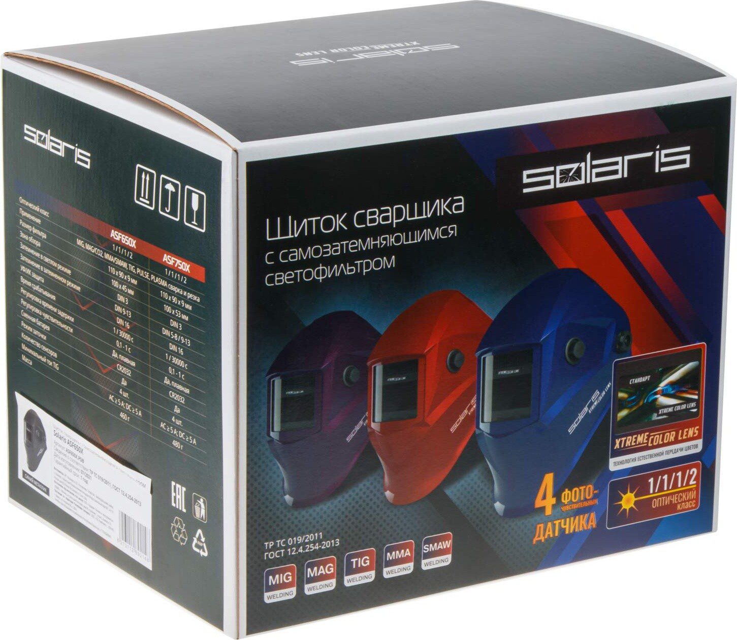 Маска сварочная хамелеон SOLARIS ASF650Х красный металлик (ASF650X.PRD) предназначена для защиты глаз, шеи, лица сварщика от светового и ИК-/УФ-излучения при сварке. Данная модель профессиональной серии оснащена качественным светофильтром с 4 фотосенсорами, что позволяет проводить сварочные работы даже на небольших токах в режиме TIG. Технология естественной передачи цветов XtremeColorLens позволяет передавать цвета более естественными, по сравнению со стандартными фильтрами-хамелеонами, где преимущественно преобладает зеленый свет.