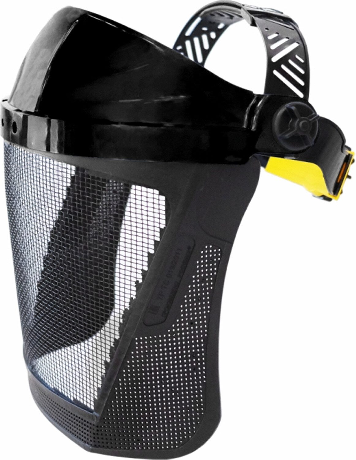 Щиток защитный лицевой СОМЗ НБТ2 Сталь Expert (423426) рекомендуется для защиты головы, глаз и лица при строительных, монтажных, ремонтных и других работах, сопровождаемых опасностью травмирования головы и лица крупными осколками, абразивом, осколками бетона, камня, металла. Применяется в лесодобывающей и лесоперерабатывающей промышленности, при строительстве дорог и мостов. Экран из стальной крупноячеистой сетки (размер ячейки 2×2 мм) обеспечивает защиту от высокоскоростных твердых частиц с низкоэнергетическим ударом; козырек уменьшенный из материала Termotreк — термостойкий, ударопрочный; наголовное крепление регулируется по высоте ношения (теменная часть) и размеру головы (затылочная часть). Регулировки по размеру позволяют точно подгонять и надежно фиксировать щиток на голове пользователя, исключая вероятность спадания, особенно при использовании с головными уборами; мягкий, гигиеничный, сменный налобный обтюратор.Размер экрана: 190х220 мм. Материал экрана: крупноячеистая сетка. Защитные свойства: FT (F — символ устойчивости к низкоэнергетическому удару 45м/с, энергия удара 0,84 Дж; Т — символ устойчивости к воздействию высокоскоростных частиц при экстремальных температурах (от -5°С до +55°С). Наголовное крепление: RAPID. Размер: 50-65 см. Материал козырька: полипропилен. Вес изделия: 235 г.